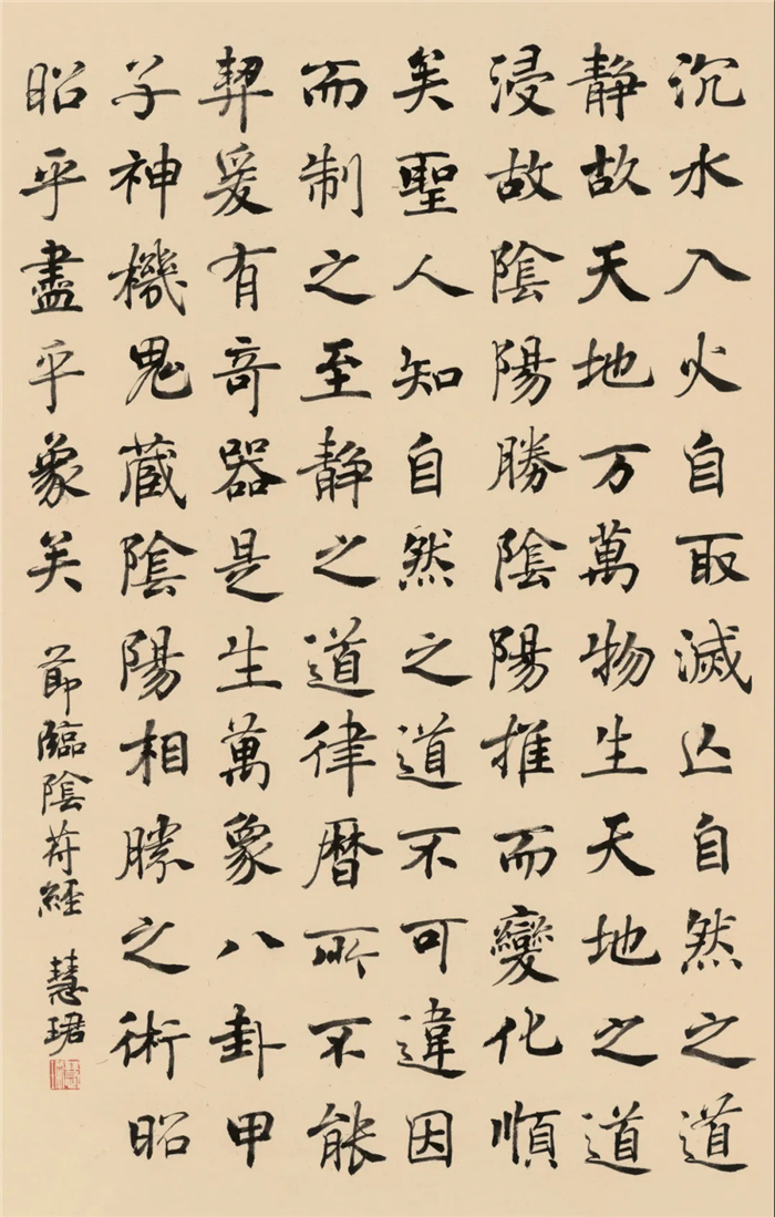 其实,周慧珺书法之所以能经久不衰地深受大众喜爱,说到底,她的为人和她的作品一样,符合中国人的传统思维,即“中庸之道”,没有完美何来“极雅”?周慧珺自有卓识和襟度,对书法的本质看得深、溯得远,并能在与己不相合的事物中摄取所需以自壮,这一特质在她的书法艺术的实践过程中被发挥得淋漓尽致。怀揣着“雅俗共赏”的审美意趣,始终如一地用沉着娴雅的笔致书写,不激不厉、开合有度,是她优游斯事的自得之意和胜出之道。