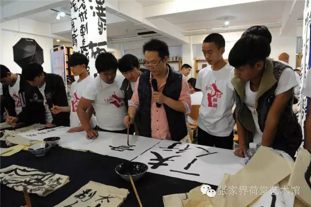 上午活动中,致爱小组成员与学生们一起在国家资深拓展教练天空老师带领下做“破冰”的拓展互动游戏,使同学们放松心情,增进友谊、拉近距离;随后带领学生观看正在荷堂艺术馆展出的“墨 磨人——陆一飞书法作品展”, 此次展览展出书法篆刻作品百余件,全面反映了陆一飞先生近年来的书学思考与创作实践。最后参观荷堂?溯源奇石馆,了解武陵奇石、澧水画面石及各种根雕把件等,通 过参观展览让同学们了解中国书法,开阔眼界,通过这种课堂与展览相结合的形式,使同学们对展馆的布置、书法作品的材质、形式的处理有一定的了解 。