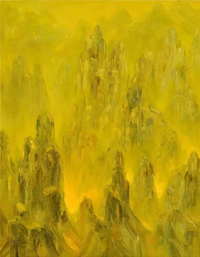 来张家界是因为吴冠中,喜欢吴冠中作品中对张家界的描述。最开始对张家界期待不高,第一次去核心景区时在缆车上被张家界景色震撼到了,我去过很多地方看过很多山,但张家界的山是最震撼的,最符合宗教表现方法,能够展现我内心的情感。所以我很喜欢这个地方,在喜欢的过程中我就开始不断的创作关于张家界的作品。