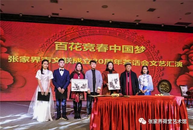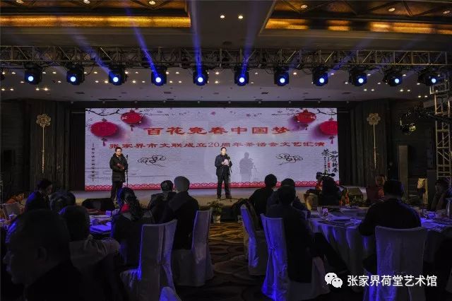 2月2日下午,“百花竞春中国梦”张家界市文联成立二十周年茶话会暨文艺汇演在阳光酒店隆重举行。市委副书记刘绍建、市人大副主任向锦云、市政府副市长邹菊芳、市政协副主席周芳、原市委正厅级领导陈美林、原市人大正厅级领导易继强、市委组织部副部长陈叶峰、市委宣传部副部长赵富生等领导出席并观看了演出。市文联主席团成员、永定区文联、武陵源区文联、慈利县文联、桑植县文联、市作家协会、市摄影家协会、市美术家协会、市文艺评论家协会、市音乐家协会、市艺术收藏家协会、市书法家协会、市舞蹈家协会、市影视家协会、市诗词楹联协会、市诗歌学会、市戏曲家协会、市民间文艺家协会、市演讲与口才协会、荷堂艺术馆等各文艺家协会的主要负责人和相关代表近500人参与此次活动。