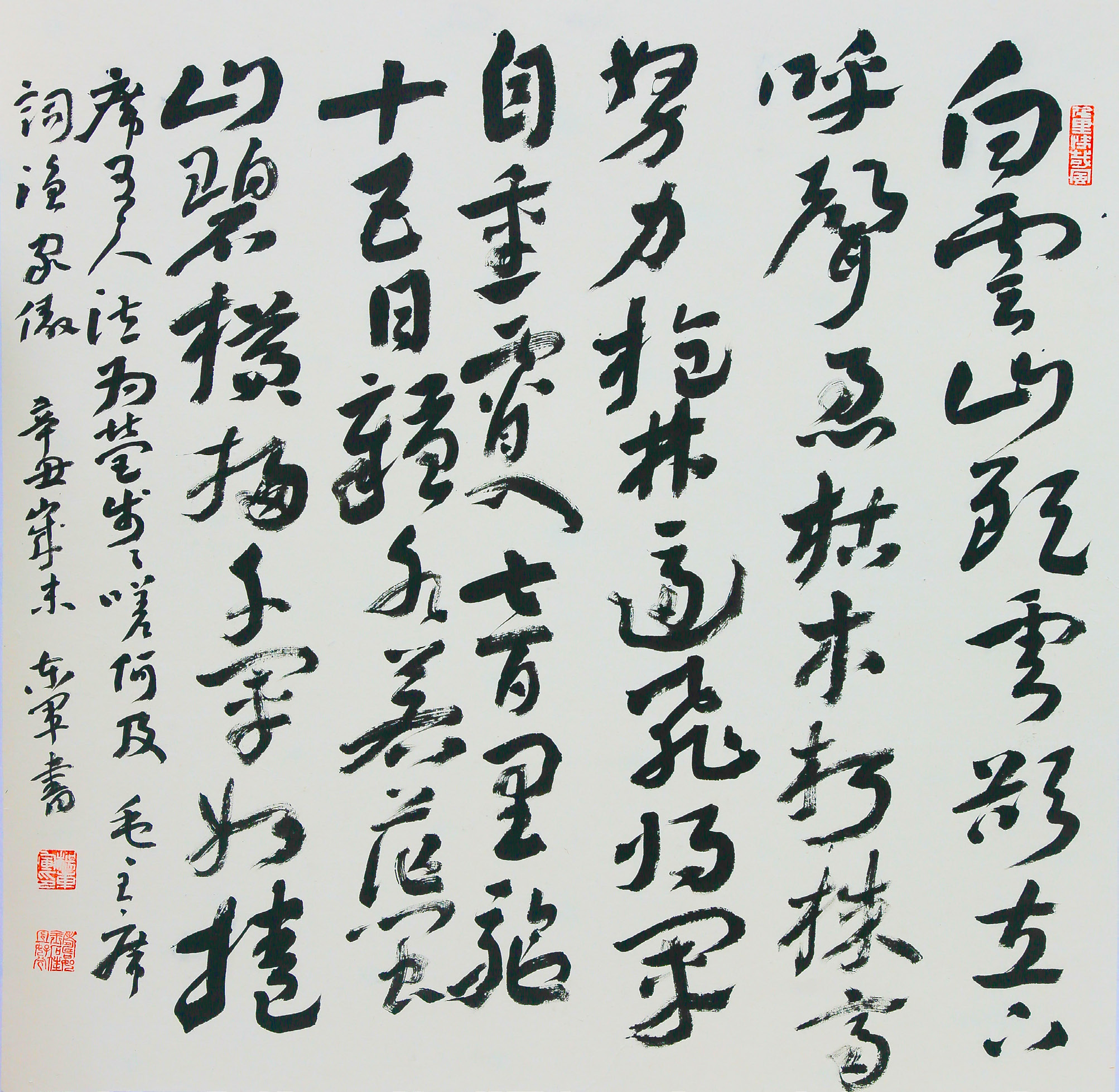 大家坐在一起,无限的感慨,无限的唏嘘。过了这么多年,大家还在坚守着自己的梦想。没有放下手中的毛笔,没有随世俯仰。茶话之余,谈及青年才俊杨统钊、沈林,作为张家界书法艺术的后备力量,皆是以书证道,不囿于衣食者。杨东军遂提议,何不六人合办一个联展,以见证20年的艺缘,也是张家界中青两代书画人的一次对话。于是大家分头准备,数易其稿,精心创作。奈何疫情流行,三改其期,直到今日作品才得以展示。